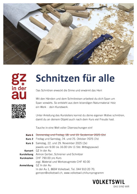 Schnitzkurs in Volketswil, mit Armon Gerber